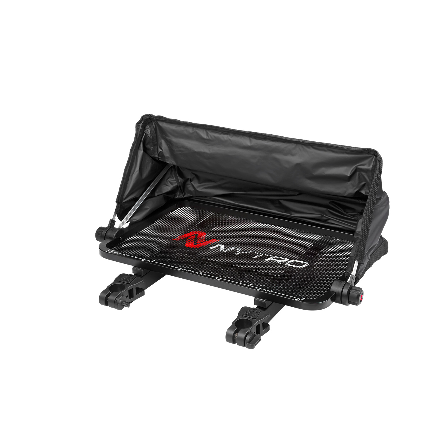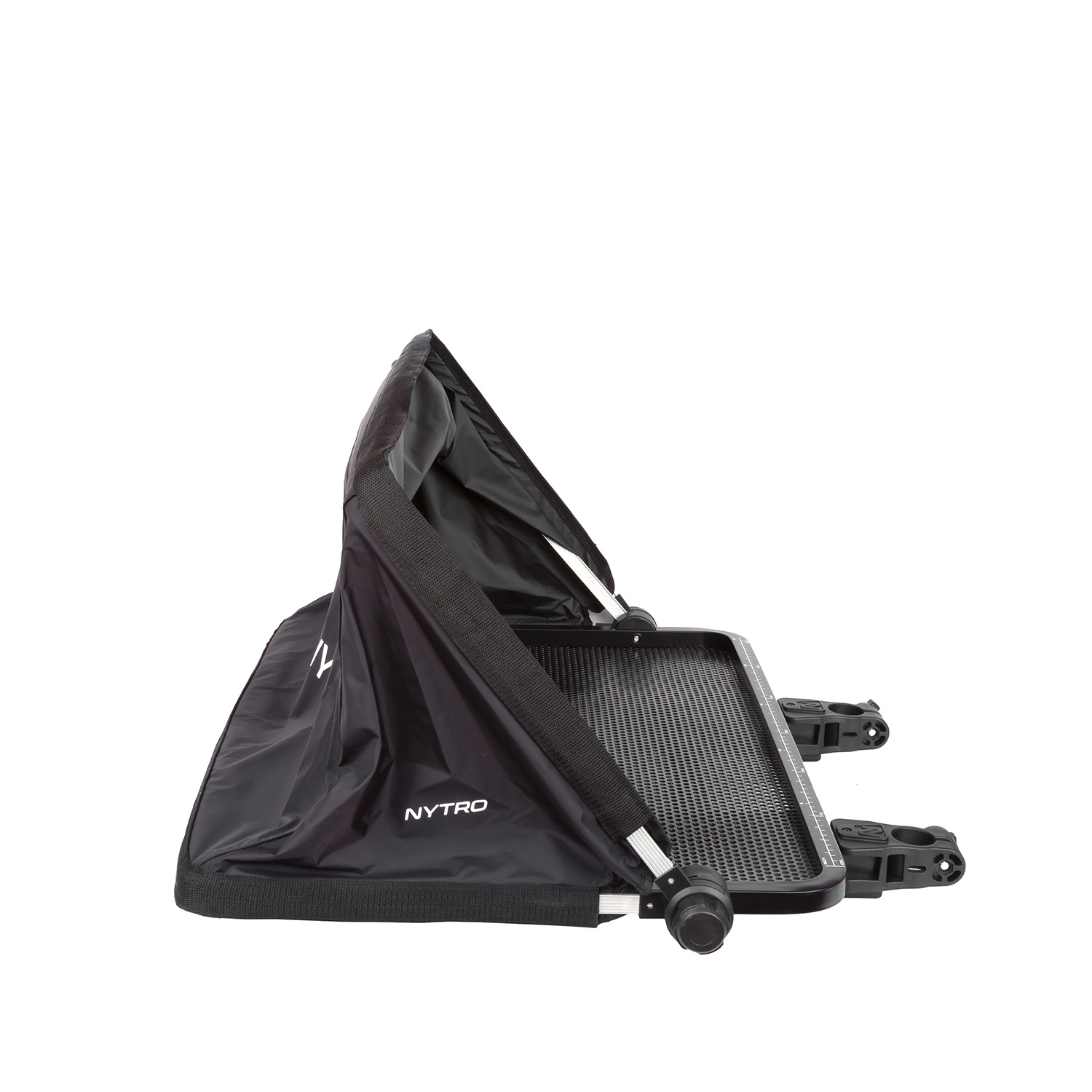 Unlike conventional hooded trays where the cover eats into your working area, the Nytro hood folds back behind the tray, leaving the full surface free for bait tubs and essentials. The hood can be fixed in any position, so it stays exactly where you set it, even in strong winds. For durability and long-term reliability, the hood ribs are reinforced with aluminium strips.